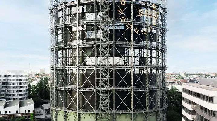 Der zwischen 1908 und 1910 errichtete Gasbehälter versorgte die Stadt über Jahrzehnte mit Gas und konnte bis zu 160.000 Kubikmeter Brennstoff speichern. Als Symbol des Berliner Industriezeitalters prägte er mit seiner imposanten Stahlkonstruktion, die 1994 unter Denkmalschutz gestellt wurde, das Stadtbild. Nach seiner Stilllegung stand das Gebäude jedoch lange leer – bis das Gelände Teil des Innovationsparks EUREF-Campus wurde und die neuen Eigentümer ein Projekt zur Umgestaltung des Wahrzeichens vorstellten.