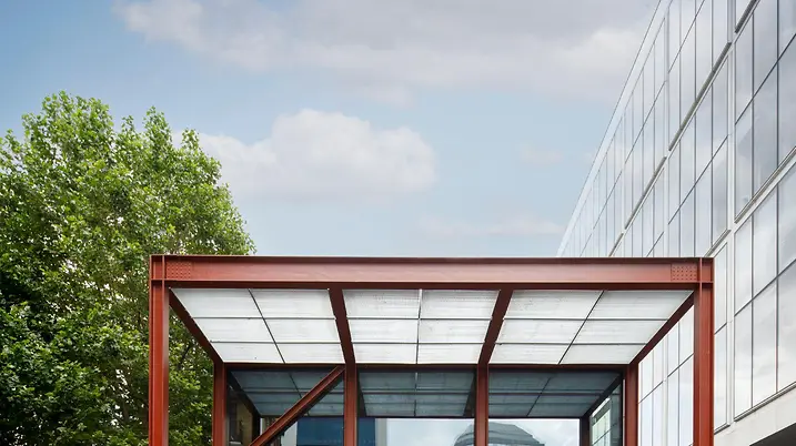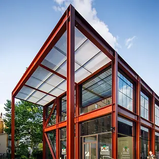 Markante Stahlkonstruktion für Gewerbe und Gastronomie