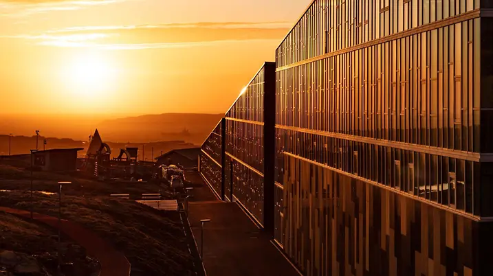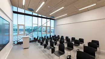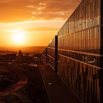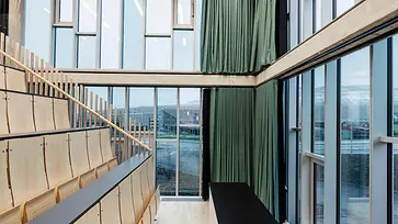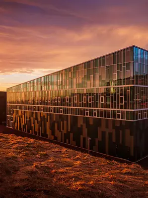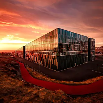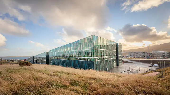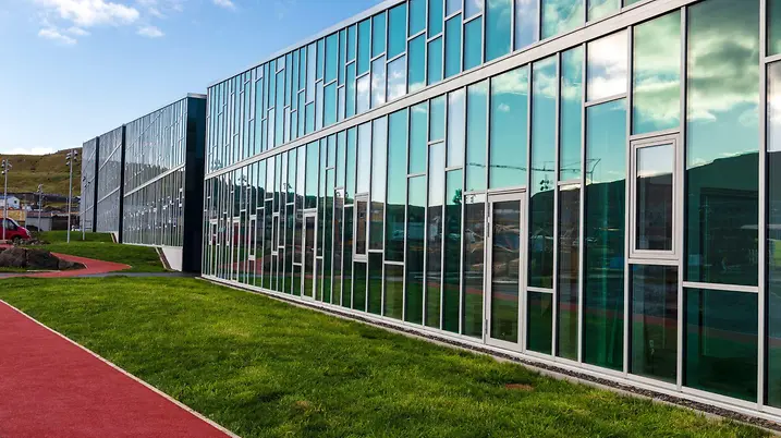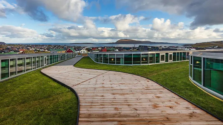 Mit 850 Schülerinnen und Schülern sowie 150 Mitarbeitenden ist die Grundschule in Flotum die größte auf den Färöern. Das preisgekrönte Architekturprojekt verbindet modernes Lernen mit einer Umgebung, die von der umliegenden Landschaft inspiriert ist.