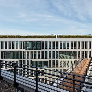 Der Neubau wurde nach den Prinzipien des Cradle-to-Cradle-Verfahrens (C2C) konzipiert und erhielt das DGNB-Gold-Zertifikat. Unter anderem wurden C2C-zertifizierte Fenster- und Fassadenelemente von Schüco verbaut. Die Betondecken bestehen aus einem Bubble-Deck-Flooring-System, das mit Kunststoffbällen aus recyceltem Material gefüllt ist, um Beton und Gewicht einzusparen und so die CO₂-Emission zu reduzieren. Weitere Bauteile wie Schallschutzwände, Wandfarbe und Teppichböden sind ebenfalls C2C-zertifiziert.