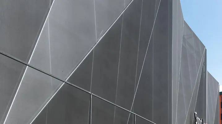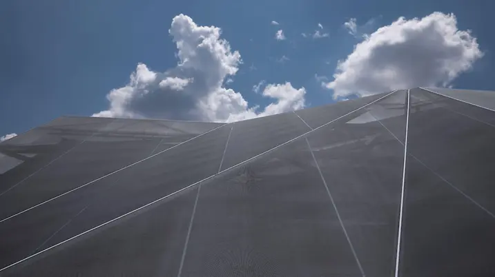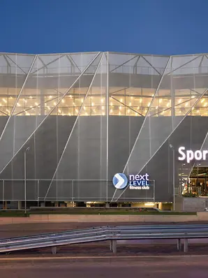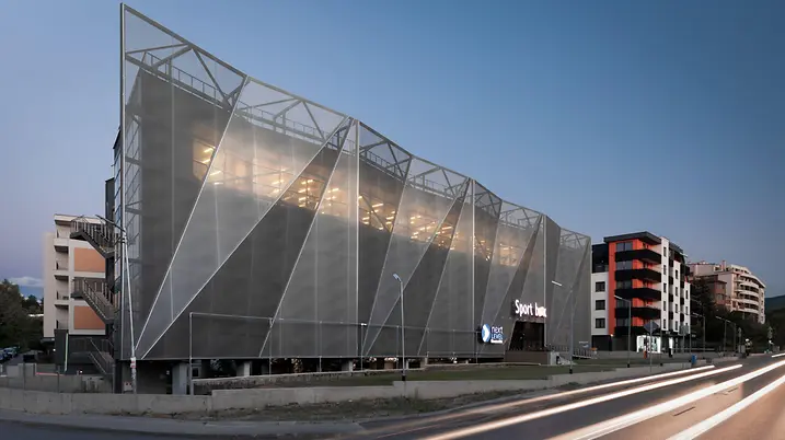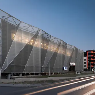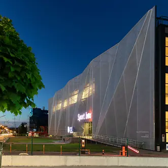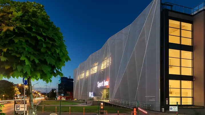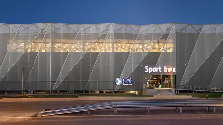 Die dreidimensionale Textilfassade verwandelt die Sport Box in einen architektonischen Blickfang und eröffnet ein beeindruckendes Spektrum an gestalterischen Möglichkeiten. Unterschiedliche Gewebematerialien, farbige und bedruckbare Oberflächen sowie frei formbare Strukturen erlauben ein Höchstmaß an kreativer Flexibilität. Ein zentrales Merkmal ist die Reversibilität: Die Fassade kann jederzeit ausgetauscht oder neu gespannt werden, wodurch sich das Erscheinungsbild schnell und effizient an wechselnde funktionale, visuelle oder kommunikative Anforderungen anpassen lässt. Langlebigkeit, Multifunktionalität und technische Raffinesse machen die Textilfassade zu einem überzeugenden Beispiel moderner, innovativer Fassadengestaltung.