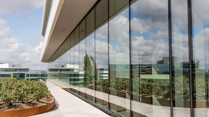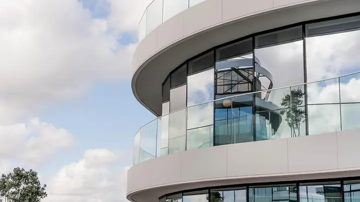Der Neubau ist nahezu energieautark und kombiniert Photovoltaikanlagen mit geothermischer Wärmegewinnung, hocheffizienten Wärmepumpen und Batteriespeichern. Das eingesetzte Schüco Aluminium-Fassadensystem zeichnet sich durch exzellente Wärmedämmung und Luftdichtheit aus. Das reduziert Wärmeverluste, senkt den Energieverbrauch für Heizung und Kühlung und trägt so erheblich zur Energieeffizienz des Gebäudes bei.