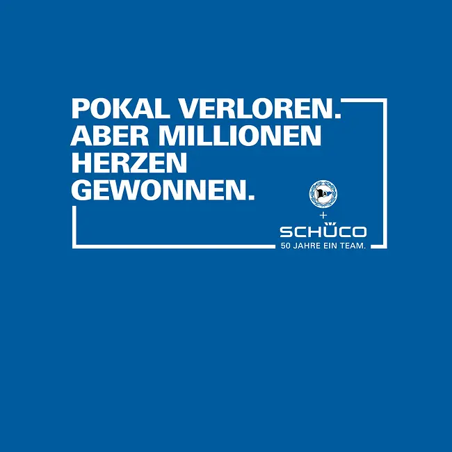 Der 24. Mai wird in die Geschichtsbücher des DSC Arminia Bielefeld eingehen. Es ist die erste Teilnahme am Pokalfinale für den Traditionsverein, dem es an Emotionen nie gemangelt hat. Denn kein Verein versteht es, die dunkelsten Tiefen genauso stur zu durchqueren wie die schönsten Höhen. Kein Verein ist so geübt im Pendeln zwischen 1. und 3. Liga. Manchmal zum Leidwesen der Fans, manchmal zu ihrer größten Freude. Wer Arminia im Herzen trägt, muss leidensfähig sein. Mit dem Pokalfinale hat Arminia sich und den Fans selbst das größte Geschenk zum Jubiläum des 120-jährigen Bestehens gemacht. Schüco stand in den letzten 50 Jahren immer treu an der Seite von Arminia – beim größten Erfolg wie bei bittersten Niederlagen. Eine Partnerschaft, die belastbar ist und von gegenseitigem Vertrauen geprägt. Für Arminia wie für seine Kunden ist und bleibt Schüco ein zu jeder Zeit verlässlicher Partner. So war es in der Vergangenheit und so wird es auch in Zukunft bleiben – egal ob Sieg oder Niederlage.