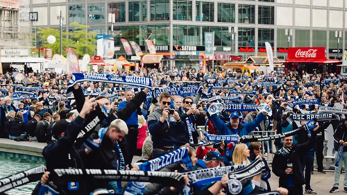 Eine ganze Stadt in Schwarz-Weiß-Blau! Ihr habt die Hauptstadt in die Farben der Arminia getaucht und aus Berlin Berlinefeld gemacht. Respekt! Auch wenn es mit dem großen Pokalsieg am Ende nicht geklappt hat, ihr habt alles gegeben, genauso wie die Jungs auf dem Rasen. Was aber für die Ewigkeit bleibt, ist das größte Spiel der Vereinsgeschichte – und das Double aus Aufstieg und Landespokalsieg.