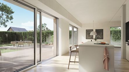 Barrierefreiheit, hoher Komfort und filigrane Optik – das hochwärmegedämmte Schüco Schiebe- und Hebeschiebesystem ASE 60/80.HI bietet elegante Designlösungen für eine nachhaltige, nutzerorientierte Architektur auf Passivhausniveau.