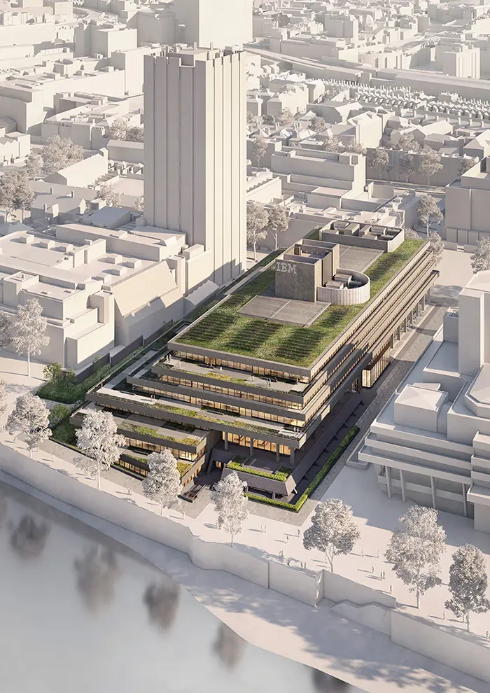 Bielefeld. Der ehemalige IBM-Hauptsitz an der Londoner Southbank gilt als Ikone brutalistischer Architektur im Vereinigten Königreich. In den vergangenen Jahren wurde der denkmalgeschützte Gebäudekomplex sensibel erweitert, energetisch saniert und den Anforderungen an ein modernes Bürogebäude angepasst – unter nachhaltigen Gesichtspunkten und mit allem Respekt gegenüber seiner architektonischen Bedeutung.