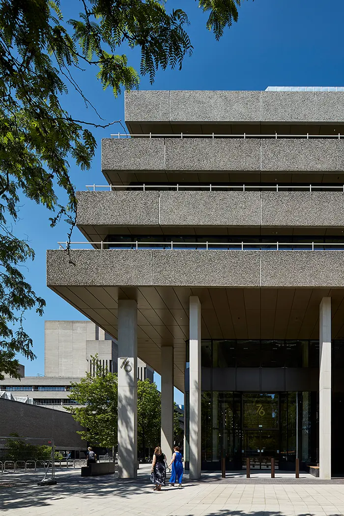 Das „76 Southbank“ sorgt mit aufwendig begrünten Fassaden und Außenterrassen und einem einladenden Eingangsbereich für eine neue Akzeptanz der strengen Betonarchitektur in dem kreativen Stadtteil.