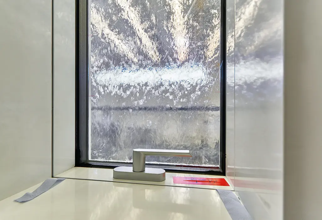 Die Prüfkammer ist luftundurchlässig abgedichtet, sodass bei dem Einsatz von Über- und Unterdruck mögliche Undichtigkeiten ausschließlich an der Fassade sichtbar werden.