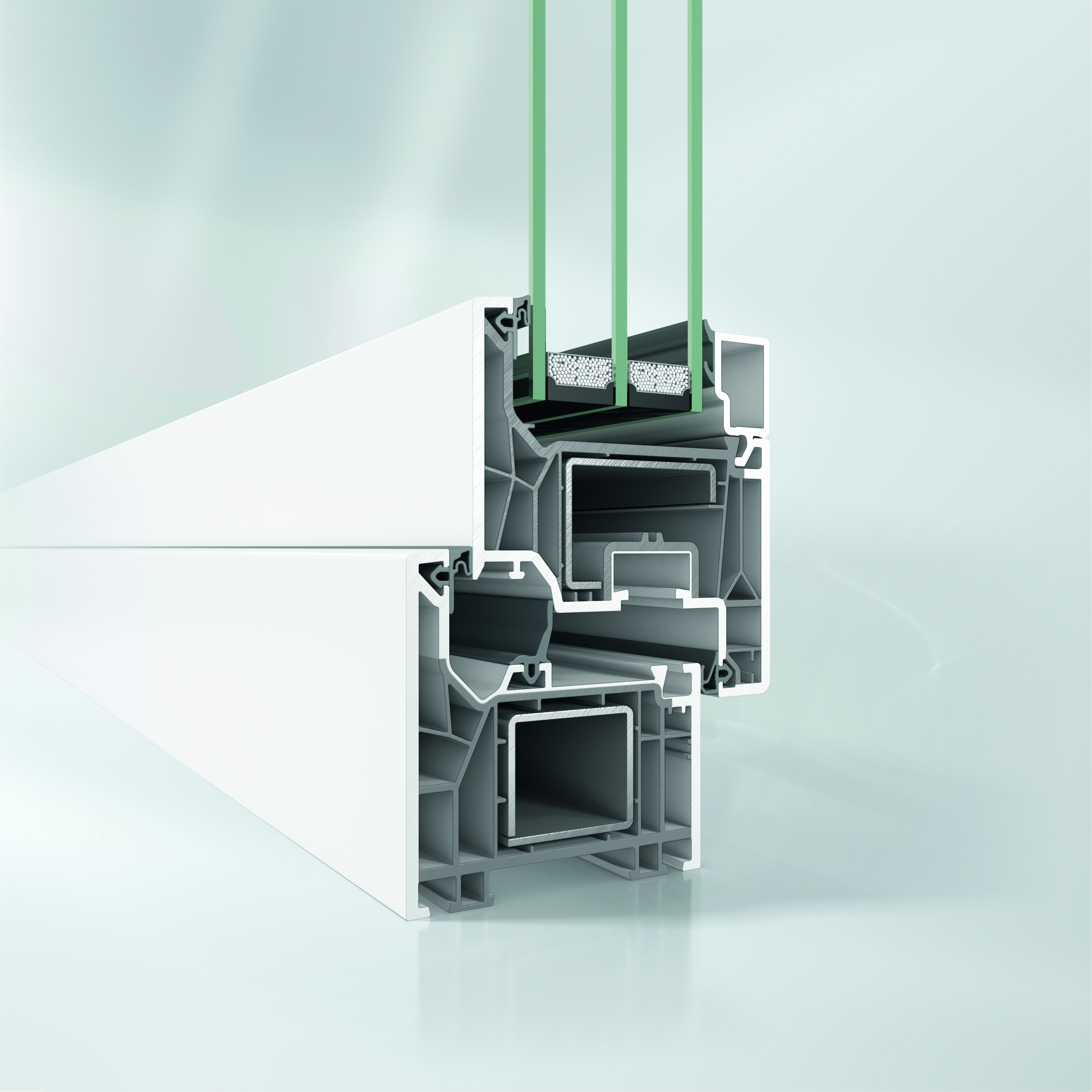 Das Twin-System Schüco FocusIng wird aus einer nachhaltigen, ressourcenoptimierten Kunststoff-Rezeptur mit Recyclinganteil im Inneren von bis zu 50 Prozent hergestellt und ist optional aus bio-attribuiertem PVC erhältlich. Mit optional wählbaren zwei oder drei Dichtebenen erfüllt es individuelle Anforderungen an Wärmedämmung, Schallschutz und Winddichtigkeit.