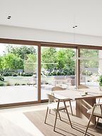 Flügelhöhen bis 2,45 Meter und vielseitige Elementtypen ermöglichen mit der großformatigen Schüco FocusIngSlide lichtdurchflutete Räume und vielseitige Gestaltungsoptionen.