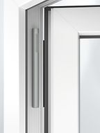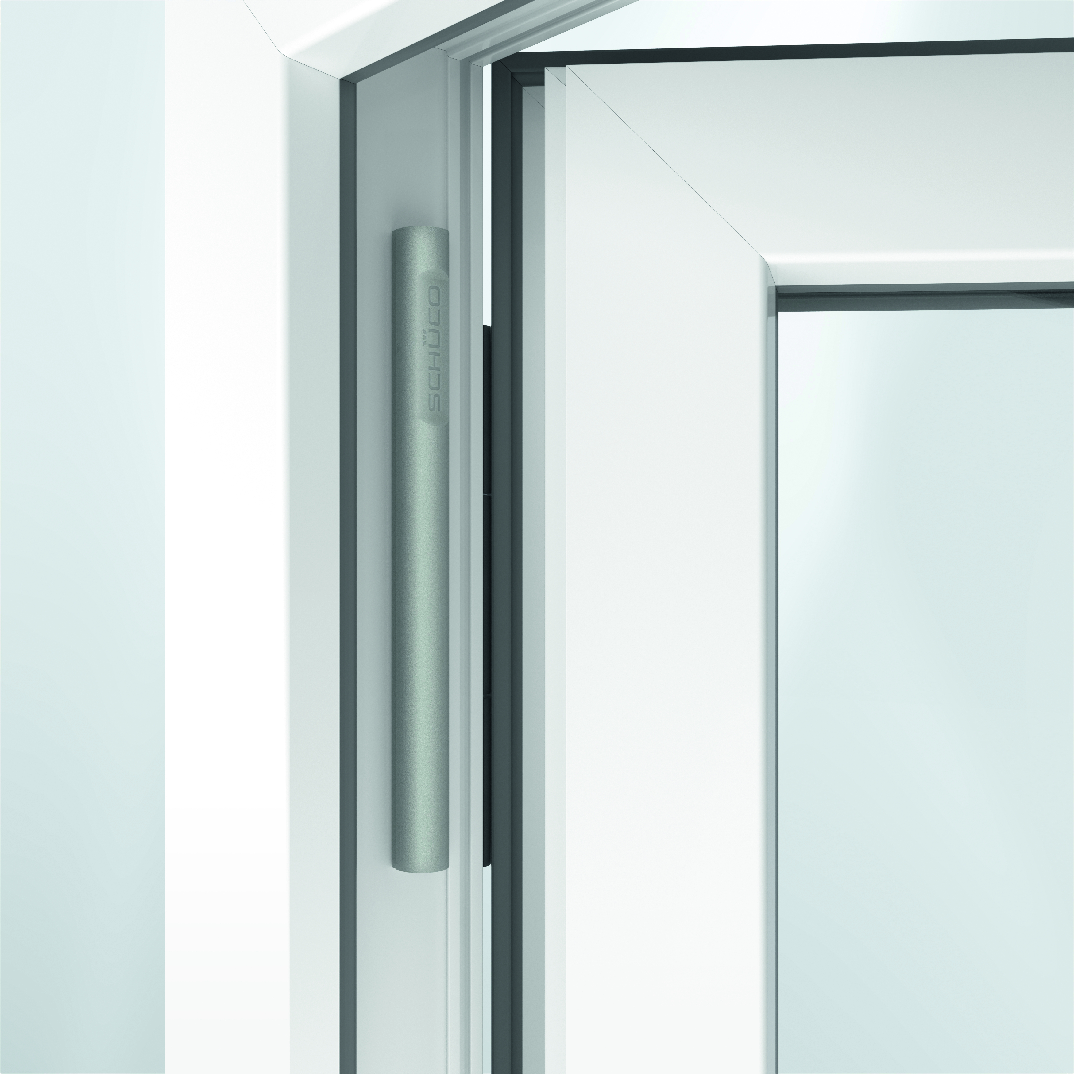 Unscheinbar und kompakt integriert sich der Schüco Funksensor in alle Kunststoff-Fenster und -Türen mit Schüco VarioTec Advanced- oder Eurobeschlag. Im geschlossenen Zustand ist der kleine Sensor dabei sogar gänzlich unsichtbar.