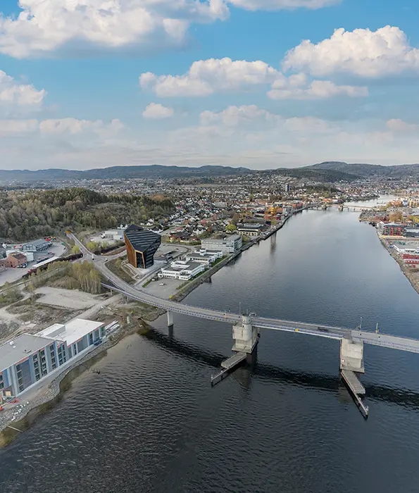 Weit über den Horizont der Industriestadt Porsgrunn hinaus ist das Powerhouse Telemark sichtbar.