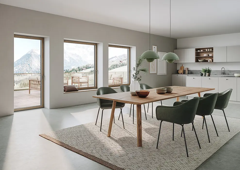 Schüco AWS (Aluminium Window System) WoodDesign ist für die bestehenden Aluminium-Blockfenstersysteme Schüco AWS 75 BS.HI+, AWS 75 BS.SI+ (Bild) und AWS 90 BS.SI+ verfügbar.