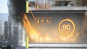 Schüco Deflame erfüllt die Anforderungen der Feuerwiderstandsklassen EI 60 und EI 90 und erreicht im Deckenbereich sogar eine EI-Klassifizierung bis zu 120 Minuten.