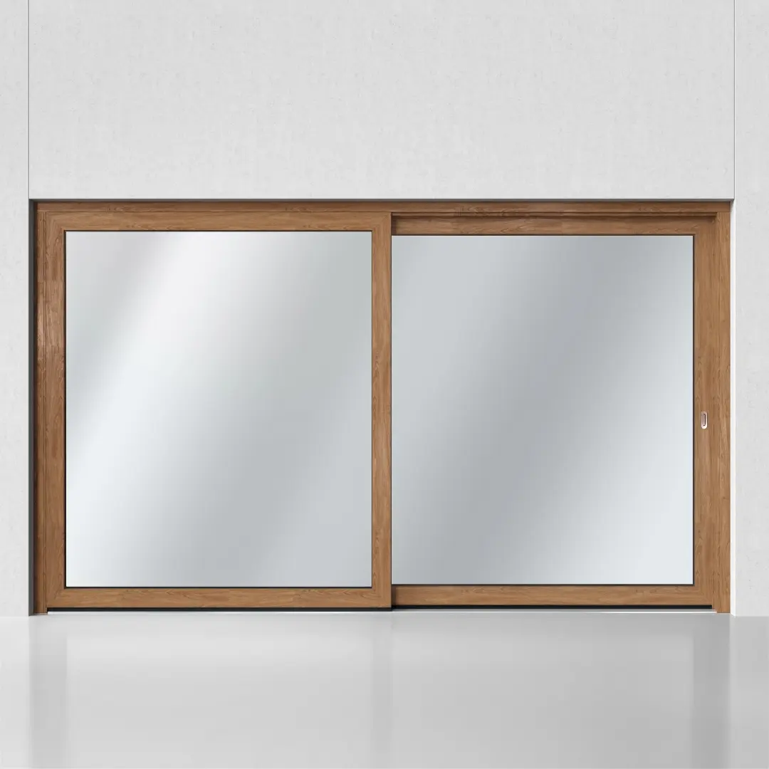 Die Schüco EasySlide – New Generation kann mit zwei bis vier Flügeln ausgeführt werden und überzeugt dank der Schüco UnlimitedFinish Farbauswahl – hier mit Holzmaserung – auch optisch.