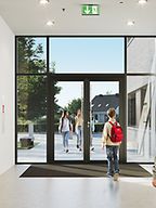 Schüco FireStop ADS 90 FR 90-CE wurde speziell für hochfrequentierte Bereiche wie Schulen und Kindergärten entwickelt.