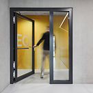 Alle Systeme der Schüco FireStop Plattform ermöglichen verdeckt liegende Beschläge für eine durchgängige Optik im gesamten Gebäude.