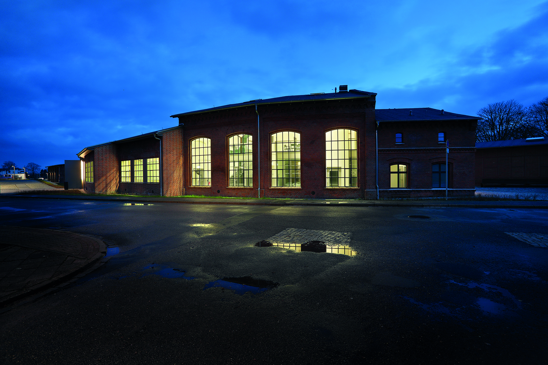 Die Sanierung des Lokschuppens Wittstock (Dosse) ist von hoher gestalterischer Qualität, sowohl was die Instandsetzung der vorhandenen Bausubstanz betrifft als auch den neuen Innenausbau mit viel Glas und schlanken Stahlsystemen.