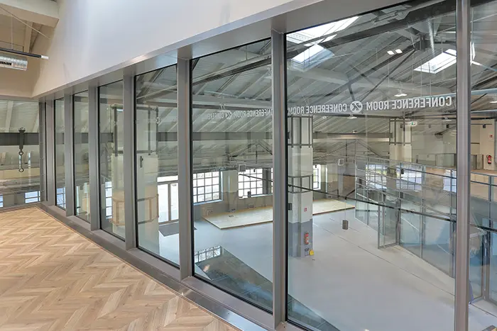 Zur Wahrung des bauzeitlichen Charakters und des einzigartigen Raumerlebnisses setzten die Architekten u.a. auf schlanke Stahlsysteme von Schüco Stahlsysteme Jansen.