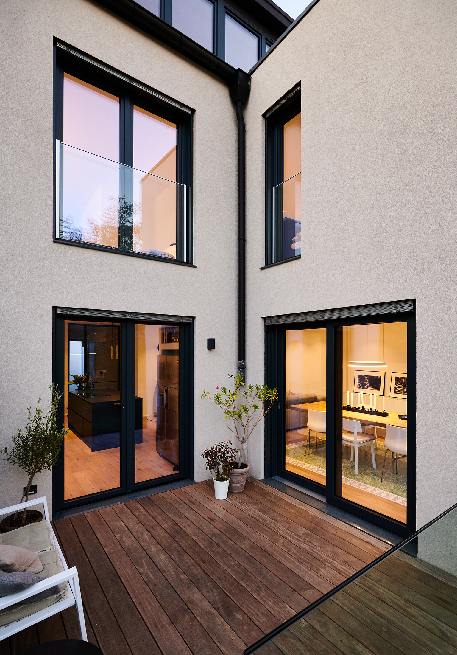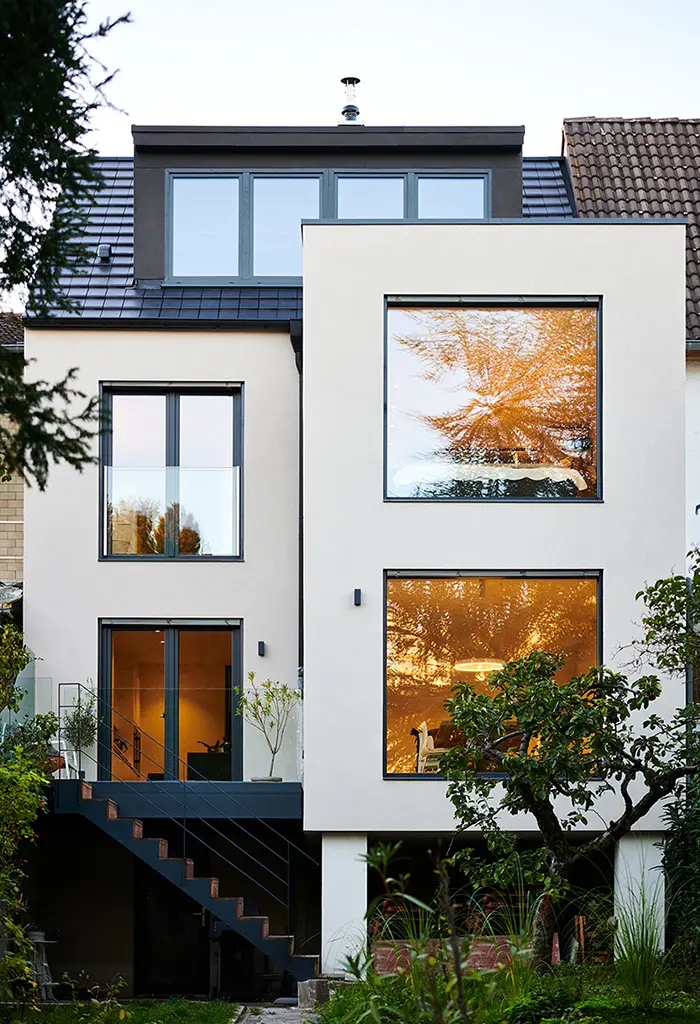 Optische Ansprüche, Komfort und Wirtschaftlichkeit stehen nach Einschätzung der Bauherren des Stadthauses bei den Produkten der Schüco LivIng Serie in einem guten Verhältnis zueinander.