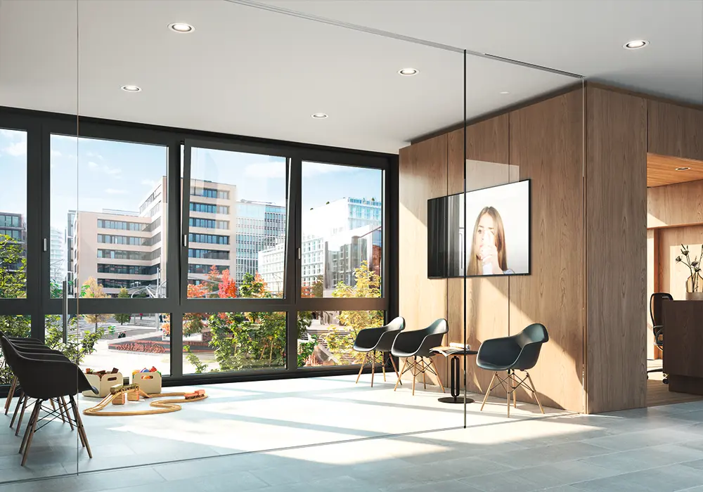 Die dauerhafte Oberflächenbeschichtung SmartActive für Schüco Fenster- und Schiebegriffe, Türdrücker und Profiloberflächen verringert die Übertragung von Keimen wie Bakterien, Viren, Pilzen und Hefen. Als unterstützende Maßnahme zur Desinfektion ist dies insbesondere in öffentlich zugänglichen Gebäuden mit hohem Personenaufkommen wichtig.
