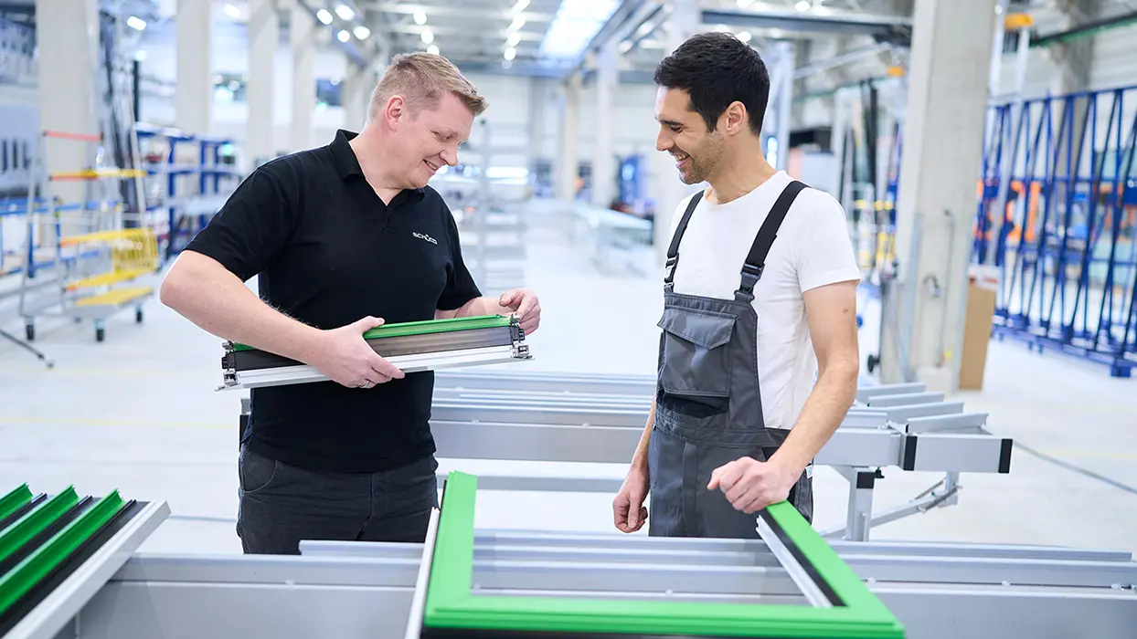 In den Schüco eigenen Trainingswerkstätten wird das in der Theorie gelernte Wissen praxisnah gefestigt und erweitert.