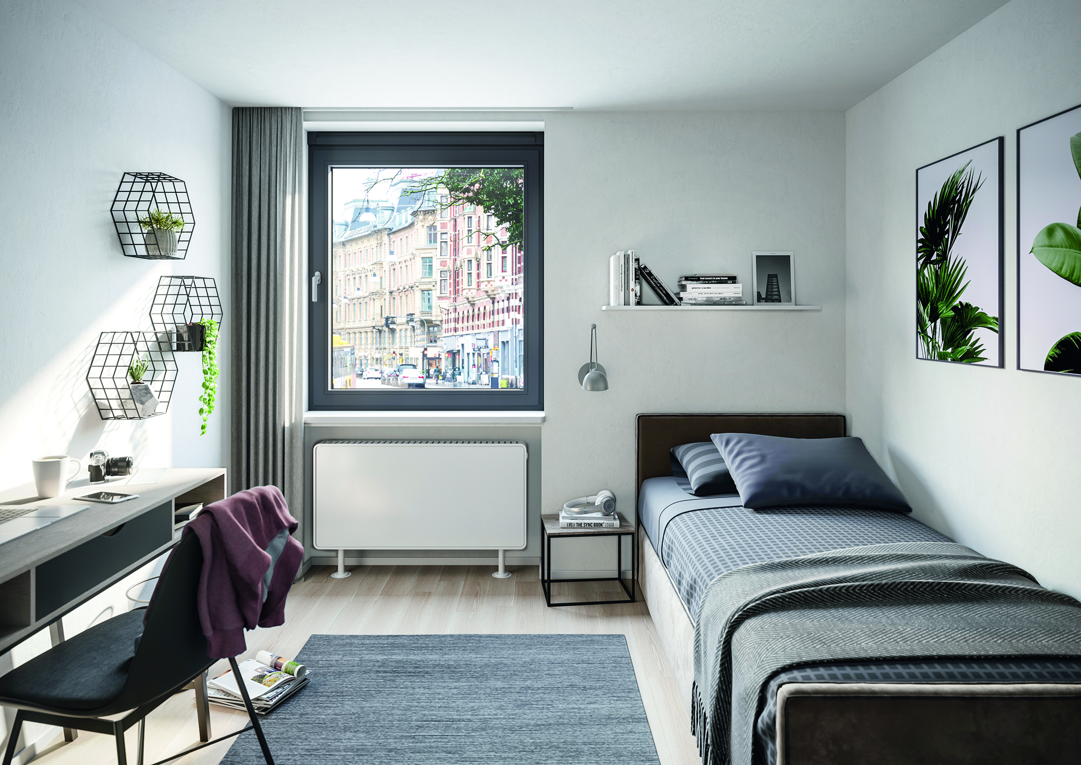 Schüco VentoFrame Asonic vereint gesunde Luftqualität mit umfassendem Schallschutz in einem unauffälligen Design – innen wie außen.