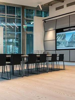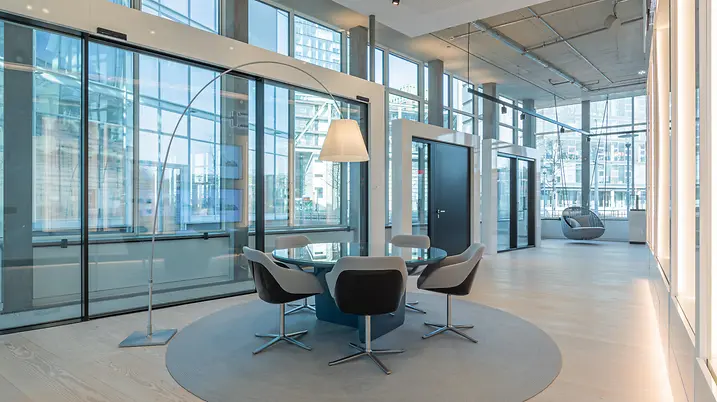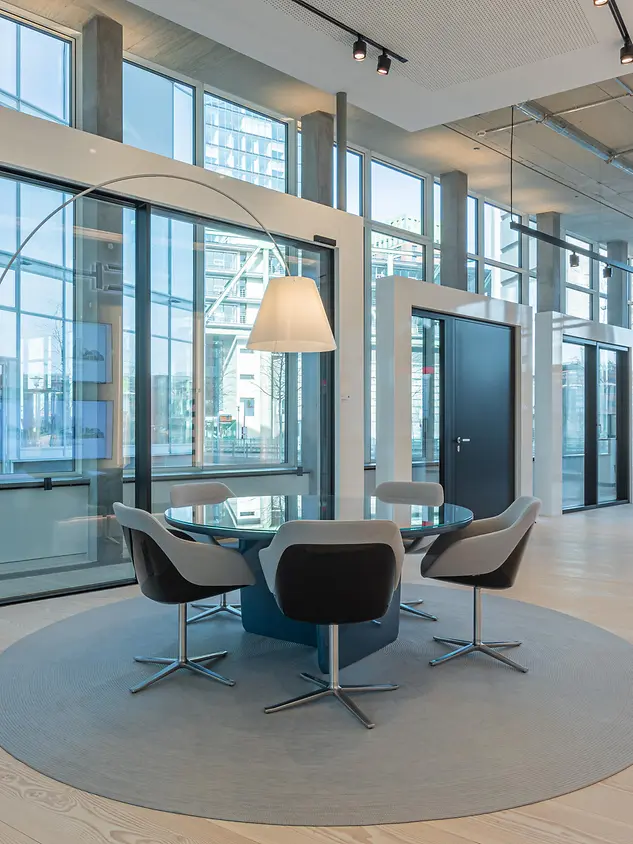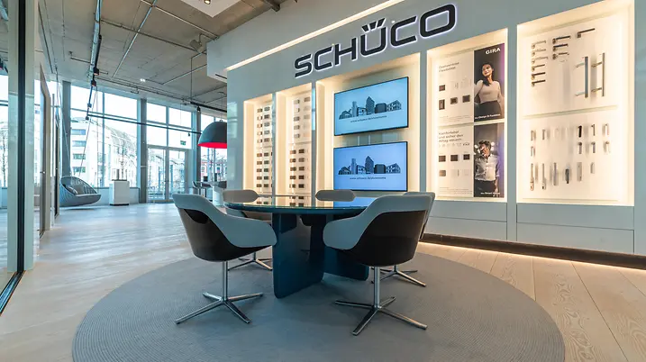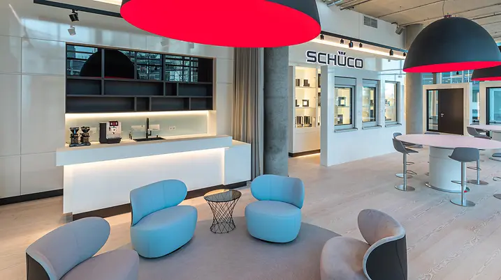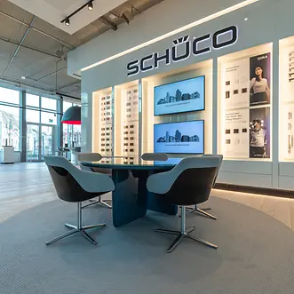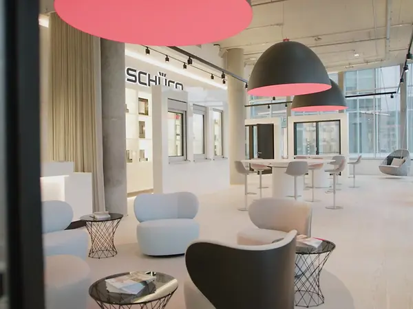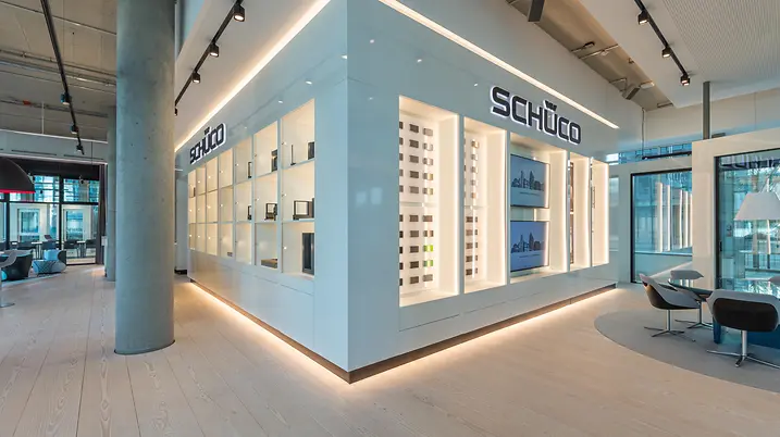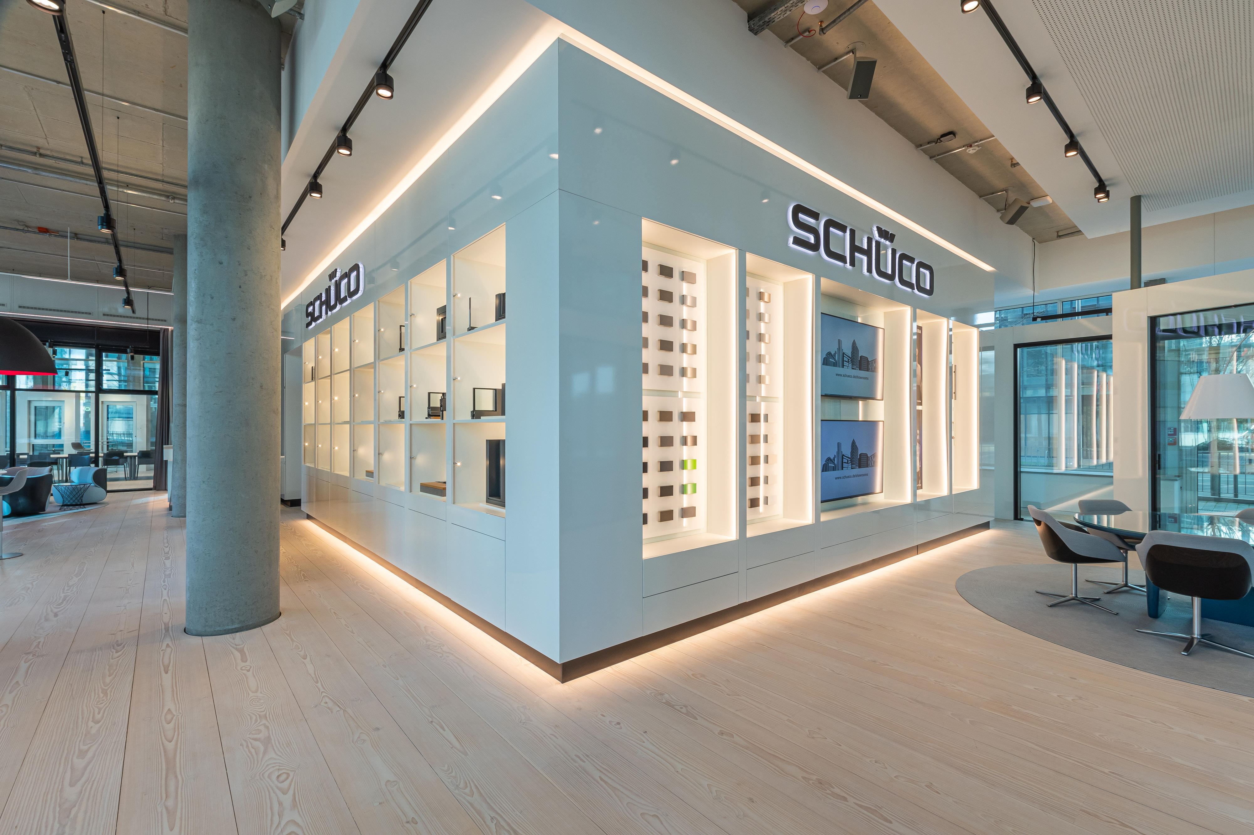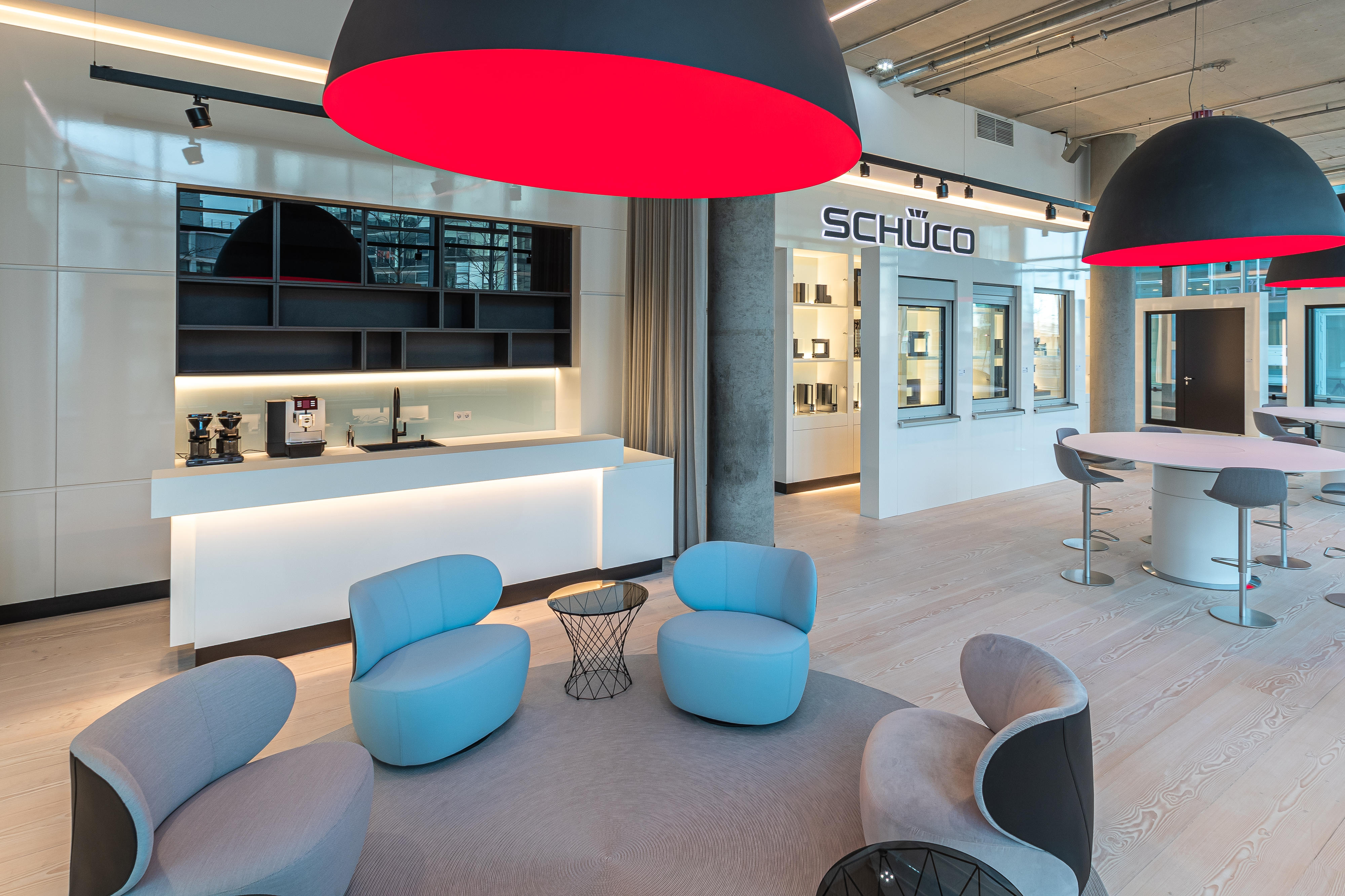 Der Showroom liegt zentral im Medienhafen in Düsseldorf. Im Erdgeschoss des FLOAT Gebäudes präsentiert sich der Showroom in neuem Design mit Großexponaten aus Aluminium. Der Medienhafen gilt als ein Architektur-Hotspot und zeigt viele Referenzobjekte in denen Schüco Produkte verbaut sind. Besucher können die Vielfalt der Muster aus dem Bereich der Schiebesysteme, Fenster- Tür und Fassadensysteme sowie aus dem Portfolio von Brand und -Sonnenschutz erleben. Für Ihre individuellen Planungs- und Beratungsgespräche heißen wir Sie und Ihre Kunden in unserem Lounge-Bereich mit Espresso-Bar herzlich willkommen. Größere Events, Schulungen und Seminare führen wir im Showroom in unserem separaten Konferenzraum durch. Sprachen: Deutsch, Englisch, Italienisch und Spanisch