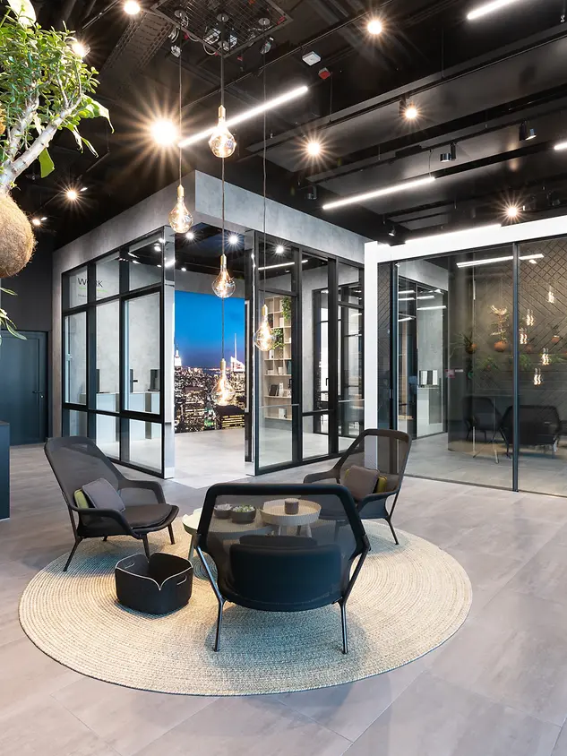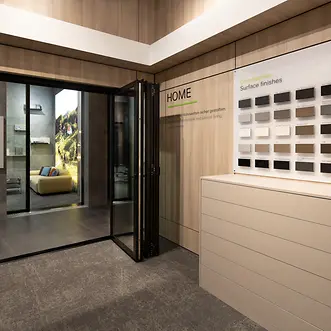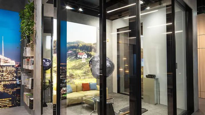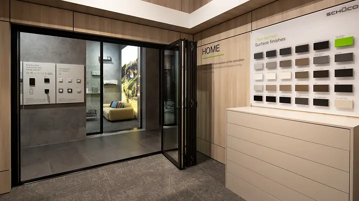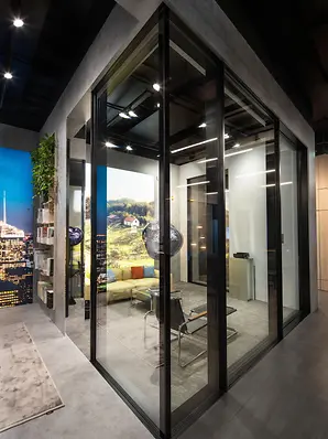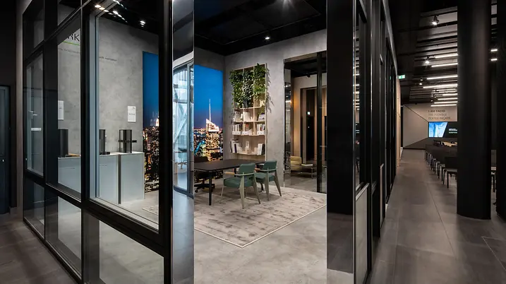 Unser Showroom befindet sich direkt im Nextower, dem attraktivsten Business-Standort Frankfurts und dem neuen Wahrzeichen im PalaisQuartier. Business in Bestlage. Mit 772 Quadratmetern Grundfläche und zahlreichen Exponaten in Originalgröße hat der Showroom einiges zu bieten. In den Themenstudios Work, Life und Home werden unter anderem das neue Schüco Panorama Design Schiebesystem AS PD 75.HI als auch die Textilfassade FACID ausgestellt. Abgerundet wird das Angebot im Showroom von dem Digital Lab, welches die digitalen Produkte von Schüco zeigt und vorstellt. Erleben Sie den Showroom selbst – ob bei einem persönlichen Beratungstermin oder einer Veranstaltung.