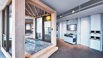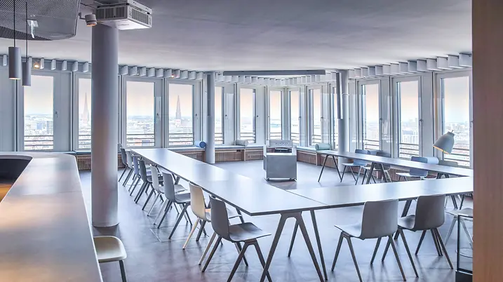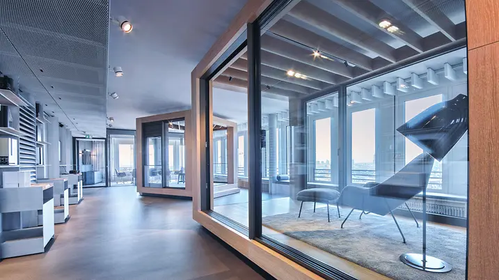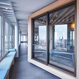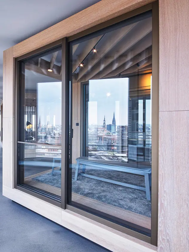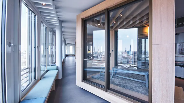 Unser Showroom im 16. Stock des Watermark Towers, dem höchsten Büroturm der HafenCity, bietet vielseitige Nutzungsmöglichkeiten. Die Kombination aus Showroom, Besprechungsräumen, Eventfläche und Loungebereich gewährt optimale Möglichkeiten für Beratungsgespräche oder Veranstaltungen.Auf 376 Quadratmetern zeigen wir nicht nur die aktuellen Fenster-, Tür-, Schiebe- und Fassadensysteme, sondern bieten auch den Raum für Workshops, Seminare und Events. Lassen Sie Ihren Blick über die Hansestadt schweifen und tauchen Sie in eine inspirierende Atmosphäre ein.