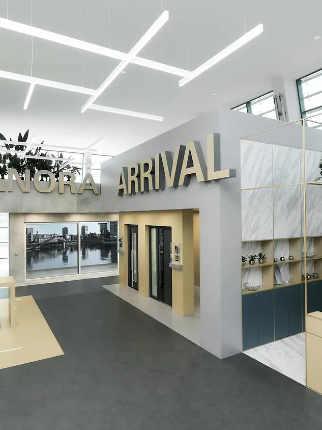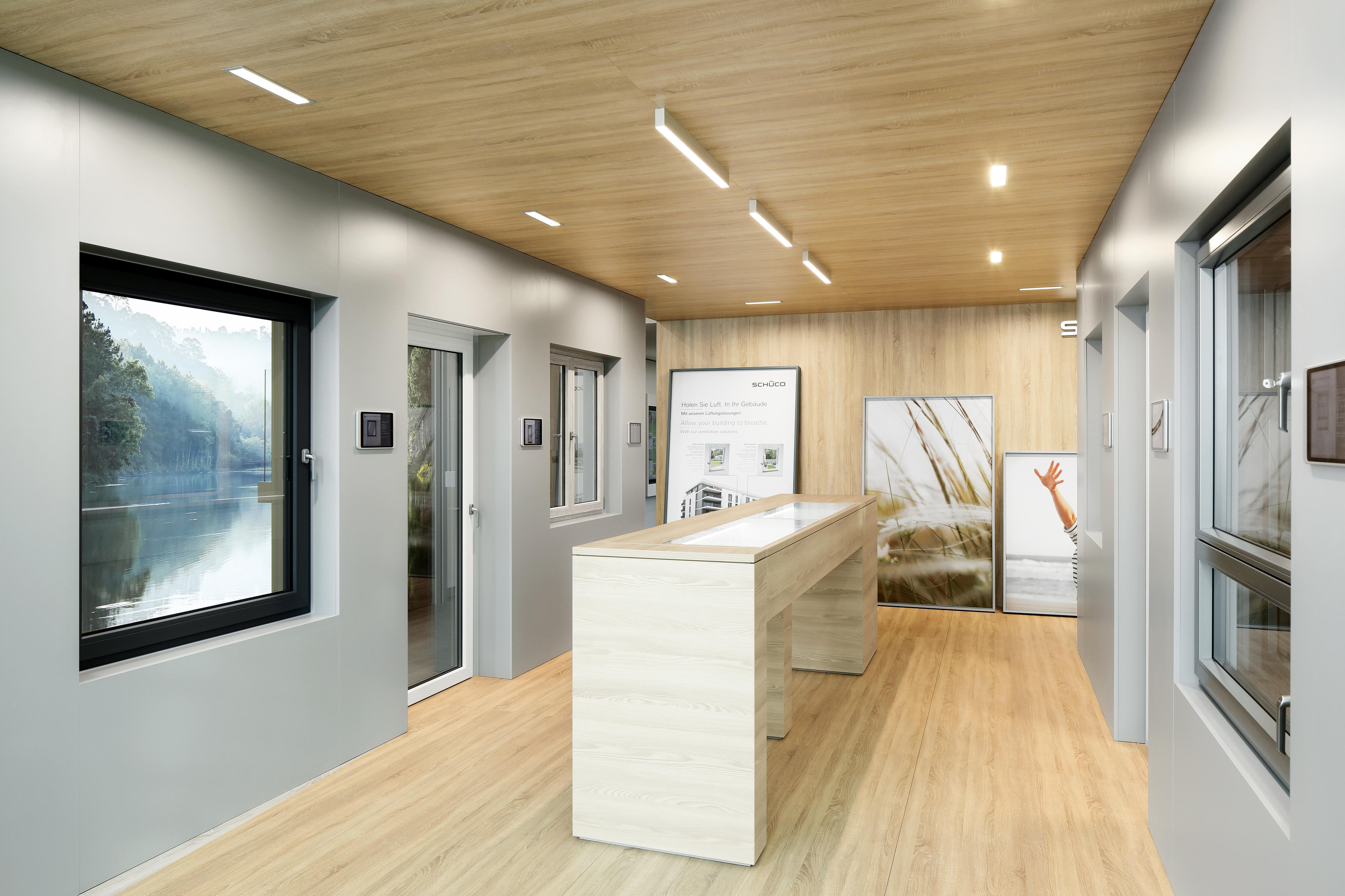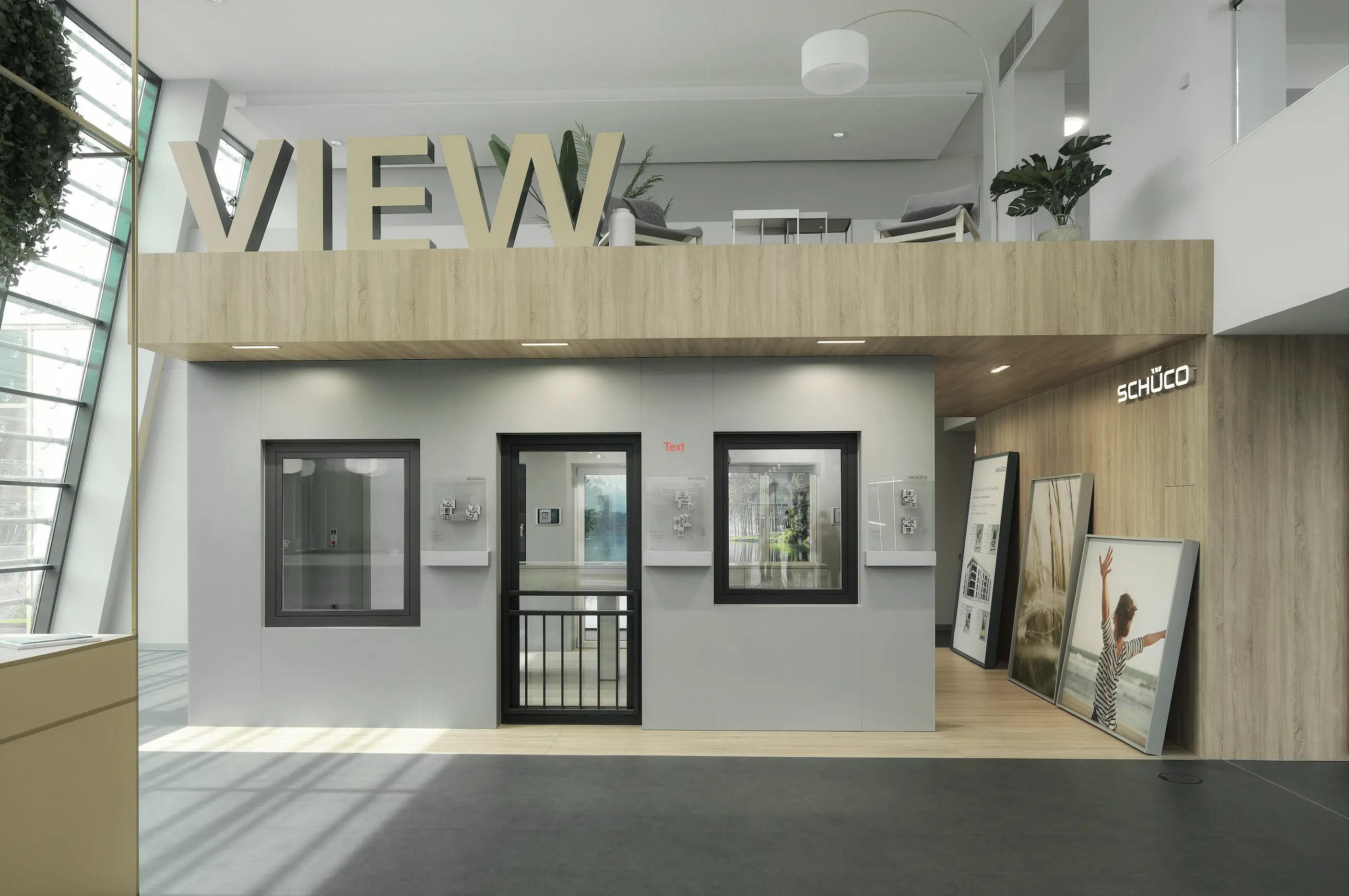 Mit 400 Quadratmetern Grundfläche und zahlreichen Exponaten in Originalgröße hat der neue Schüco Showroom in Weißenfels einiges zu bieten. In den Themenstudios ARRIVAL, VIEW und PANORAMA zeigen wir aktuelle Fenster- und Schiebesysteme aus Kunststoff sowie Türsysteme aus Kunststoff und Aluminium. Im SERVICE-Bereich erhalten Besucher einen Einblick in das umfangreiche Schüco Dienstleistungsportfolio.