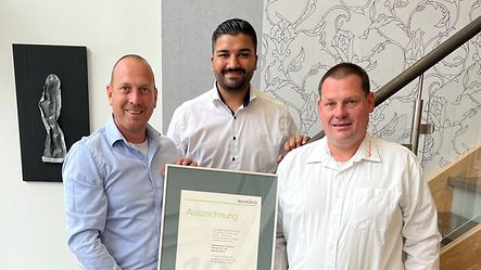 Schüco überreichte den beiden Geschäftsführern Heiko Weckenbrock und Jens Weckenbrock eine Urkunde und freut sich auf viele weitere Jahre erfolgreicher Zusammenarbeit.