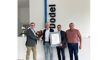 Gemeinsam stark am Markt: Anlässlich der langjährigen Geschäftsbeziehung überreichte das Schüco Team eine Urkunde und gratulierte herzlich.