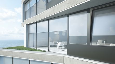 Vor allem, dass das Produkt so gut wie nicht sichtbar ist. Außerdem können Bauherren zwischen Folien und Textilbehängen wählen. Das gewährleistet Flexibilität. Auch die Farbe des Fallstabes lässt sich durch den zweiteiligen Aufbau optisch an die Fassade anpassen. Generell kann man sagen, dass durch den innenliegenden Sonnenschutz, in diesem Fall durch den Integralmaster, die Außenoptik des Gebäudes vollständig erhalten bleibt.