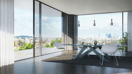 Universal Design ist der Begriff für eine Architektur, die jedem gerecht wird. Das neue Schüco Panorama Design Schiebesystem ASE 67 PD wurde dafür entwickelt, genau diesen hohen Anforderungen zu begegnen und unterschiedliche Wünsche nach Funktionalität, Annehmlichkeit und Ästhetik zu erfüllen. Im Vordergrund des Schiebesystems stehen der optimal integrierte Rahmen der Panoramafenster sowie das schmale Profil – da diese Kombination einen schwellenlosen Übergang zwischen Außen- und Innenbereich erlaubt. Dabei führen sowohl die schlanken Profile als auch das Einlassen des Flügelprofils in den Blendrahmen dazu, dass sich der Anteil der Fensterfläche vergrößert. Ein lichtdurchfluteter Raum entsteht, und das bei vollkommener Barrierefreiheit. Das natürliche Licht ist keine rein ästhetische Komponente. Sie trägt zu einem besseren psychischen und körperlichen Wohlbefinden der Bewohner bei und unterstützt einen nachhaltigen Ansatz beim Bauen, weil der Energieverbrauch langfristig sinkt.