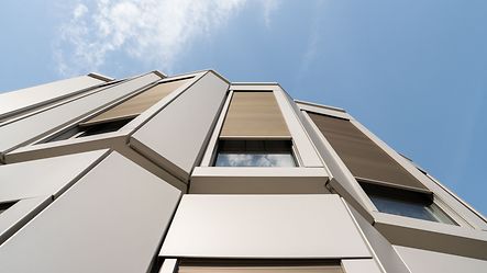 Grundsätzlich sind alle Funktionsbauteile wie der Sonnenschutz und der Blendschutz komplett in die Fassade integriert – sie sind also versteckt. Der Sonnen- und Blendschutz ist erst dann sichtbar, wenn er benötigt wird. Weiter hat jeder Nutzer und jede Nutzerin die Möglichkeit, die Verschattung beziehungsweise den Blendschutz in seinem oder ihrem Bereich individuell zu steuern. Hierzu wurden intelligente SMI Antriebe verwendet, die über das Netzwerk in die Gebäudesteuerung eingebunden sind. Durch die Einbindung in das Gebäudeleitsystem ist es möglich, das Gebäude oder einzelne definierte Bereiche am Wochenende im Automatikmodus zu verschatten oder zu verdunkeln.