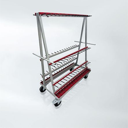 Was übersichtlich abgestellt ist, kann schnell gefunden werden. Auf dem Wagen können Glasleisten feldweise sortiert und sicher, durch eine Filzauflage vor Beschädigung geschützt, bewegt werden.