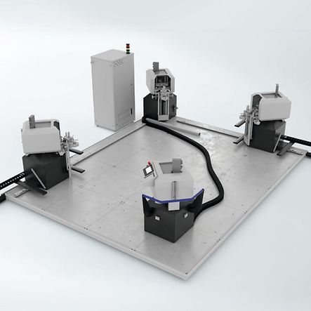 Mit der Vierkopf-Eckverbindungsmaschine können große Rahmen auf kleinem Raum mit nur einer Person gestanzt werden. Die Bearbeitung von Fenster-, Tür- und Fassadenprofilen erfolgt an allen vier Ecken gleichzeitig und automatisch, sodass sämtliche Profilgrößen effizient und prozesssicher in maximal 40 Sekunden bei konstanter Qualität verbunden werden. Das Schüco Spann- und Stanzsystem verteilt die Zuschnitttoleranzen gleichmäßig auf die Ecken und der barrierefreie Zugang erleichtert das Einlegen der Profile. Die meisten Geometrien werden mit demselben Stanzmesser bearbeitet und die automatische Einstellung des Kammervorsatzes spart Kosten. Die Anlage lässt sich optimal in die Fertigungslinie implementieren und platzsparend in einer Hallenecke aufbauen.