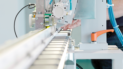 Der Klipsautomat von Schüco beschleunigt Ihre Montageprozesse in der Fensterfertigung. Dank des Automaten werden die Glasleistenhalter in gleichmäßigen Abständen auf die Glasleisten gesetzt.