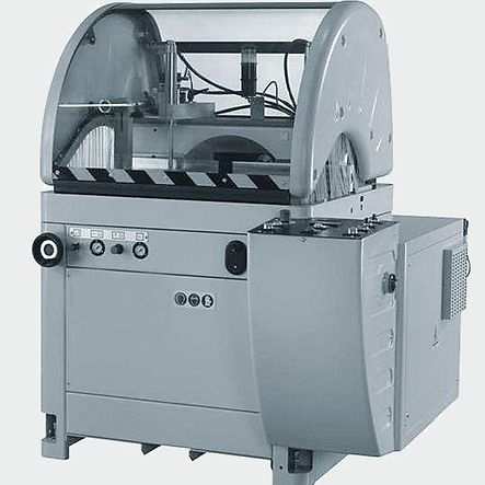 Diese Einkopfsäge ist darauf ausgelegt, dickwandige Aluminium-Profile, wie Balkonprofile, zu bearbeiten. Die technischen Voraussetzungen, unter anderem das 550 mm starke Sägeblatt und die beidseitige Einstellbarkeit eines Gehrungsbereichs von 20°, erlauben ein vertikales Ablängen des Materials und das Erreichen einer sauberen Oberfläche.