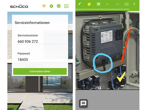 Meistern Sie Herausforderungen in Service und Wartung mit unserem Fabrication Realtime Support. Die Schüco App für mobile und weltweite Zusammenarbeit in Wartung und Instandhaltung bietet Ihnen Live-Video- und Sprachkommunikation zwischen Technikern vor Ort und unseren Schüco Experten im Service-Center. Die Bildqualität ist speziell für den Wartungs- und Instandhaltungsfall optimiert. Zusätzliche Features beinhalten einen Chat und die gemeinsame Arbeit auf einem Whiteboard. Um die volle Kontrolle über alle Inhalte zu behalten, ist Schüco Fabrication Realtime Support mit den aktuellsten Verschlüsselungstechnologien gesichert.