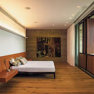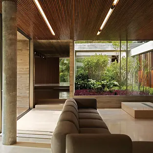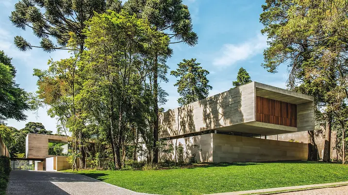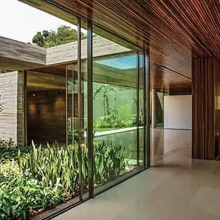 Casa Horizontal, ein Einfamilienhaus mit 1.753 m² bebauter Fläche, befindet sich auf einem weitläufigen Grundstück in einer geschlossenen Wohnanlage in Curitiba. Der Name des Gebäudes bezieht sich auf die drei „schwebenden“ Stahlbeton-Balken, das Herzstück des Entwurfs. Großformatige Panorama Design Schiebetüren lassen Innen- und Außenbereiche verschmelzen.