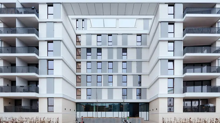 Nachhaltiges Bauen bezieht zunehmend den gesamten Lebenszyklus von Gebäuden mit ein – der Anspruch an Funktionalität und Flexibilität von Fassaden steigt damit stetig. Mit dem modularen Rahmensystem für textile Schüco FACID Fassaden kann das äußere Erscheinungsbild eines Gebäudes ohne funktionelle Einschränkungen schnell und effizient an veränderte Anforderungen angepasst werden – ein wichtiger Meilenstein auf dem Weg zur transformativen Fassade.