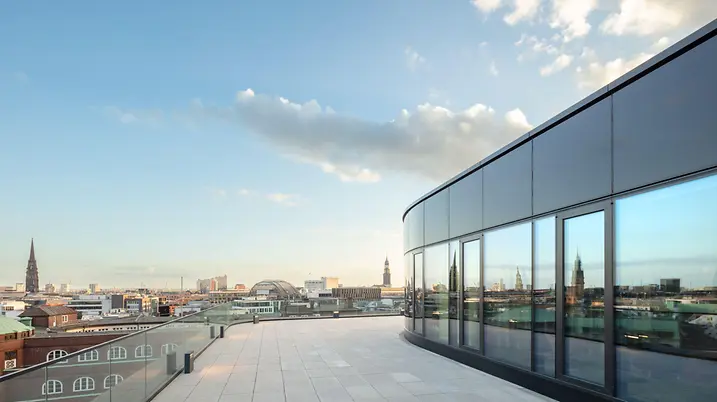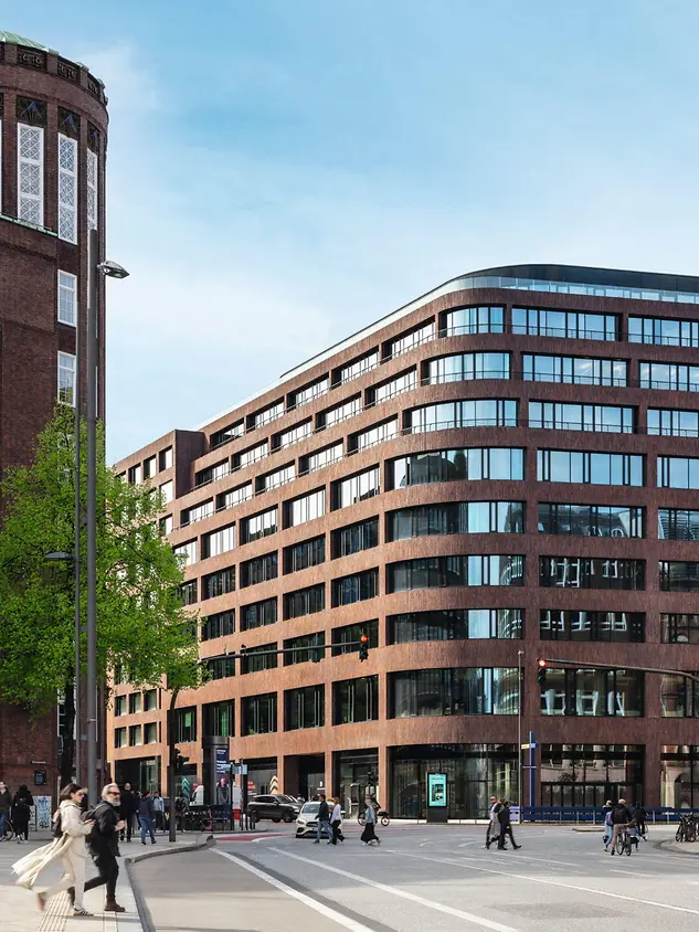 Mit seiner roten Klinkerfassade und den lichtdurchfluteten Innenräumen schafft das Deutschlandhaus von Hadi Teherani Architects eine harmonische Verbindung von Tradition und Innovation im Herzen Hamburgs. Laut dem Architekturbüro wird eine Zertifizierung der Kategorie „Leadership in Energy and Environmental Design LEED Gold“ angestrebt. Die Vorzertifizierung ist bereits erreicht.