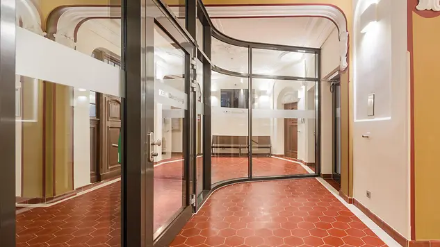 Der Eingangsbereich des Land- und Amtsgerichts Stade wurde in Bezug auf die erforderliche Hochsicherheit auf den neuesten Stand gebracht. Unter anderem kamen Sicherheitsfenster mit integrierter, gesicherter Schiebemulde sowie gegenseitig verriegelnde Türen zum Einsatz. Besonderer Wert wurde neben der Produktauswahl darauf gelegt, die Erneuerung des Bereichs mit der historischen Bausubstanz des denkmalgeschützten Gebäudes in Einklang zu bringen.