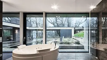 Mit hervorragenden Wärmedämmwerten sowie einem schlanken Design ohne sichtbare Flügelkonturen erfüllt Schüco AWS 75 BS.HI+ (Block System High Insulated) höchste energetische und architektonische Ansprüche bei größtmöglicher Transparenz.