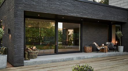 Modsat det store vinduesparti ud imod skoven er der indsat en stor skydedør ud imod den roligere have, hvor vinden rusker knap så meget. Her åbner familien op til sommerens milde vejr, så ude og inde flyder sammen. For det er netop det, en stor skydedør kan. Den skal gøre haven og terrassen let tilgængelig, så man kan nyde udeområdet og også på den måde invitere naturen ind, samtidig med at stuen udvides. Familien har i dette tilfæde valgt en ASS 70.HI hæve-sænke skydedør, som er nem at betjene, og som kan åbnes og lukkes uden store anstrengelser. Døren stopper dog automatisk op, før den lukker helt i, så små børnefingre ikke risikerer at blive klemt.