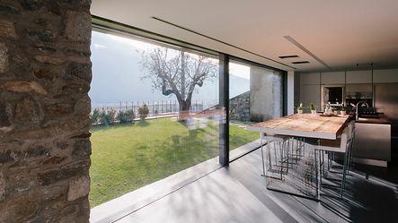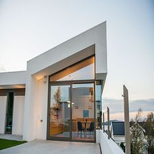 Ser vi derimod på skydedøre, så er kodeordet panoramaudsigt. Skydedøre kan nærmest eliminere overgangen mellem ude og inde – både i åben og lukket tilstand. Fløjene kan udføres meget store, så kun de få smalle lodrette profiler bryder udsigten. Du kan tilmed bygge karmen ind i væggen, så den heller ikke kan ses, og dermed opnår du maksimalt glasareal. Skydedøren bør dog passe til husets arkitektoniske stil, som dermed opnår stor åbenhed.