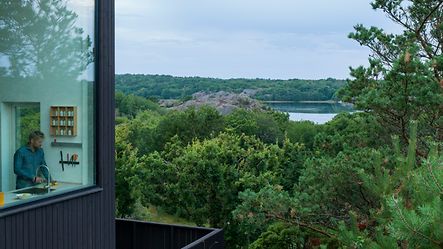 Derudover er der en glasfacade, der strækker sig rundt om et hjørne og lader det vigtige dagslys sive ind i resten af huset. Terrassen med de store glassektioner på begge sider af huset giver ekstra adgang til lys og til udsigten ud over den fantastiske norske fjordlandskab.