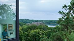 Between rocks and ferns, the 82 concrete steps wind up the steep mountain. They lead to Jacob and Jenny Fröslee Jonsson's holiday home: a timeless yet modern 100 m2 retreat on the small island of Flatön on the west coast of Sweden. The architect couple built Villa Yv for themselves and their four children.
